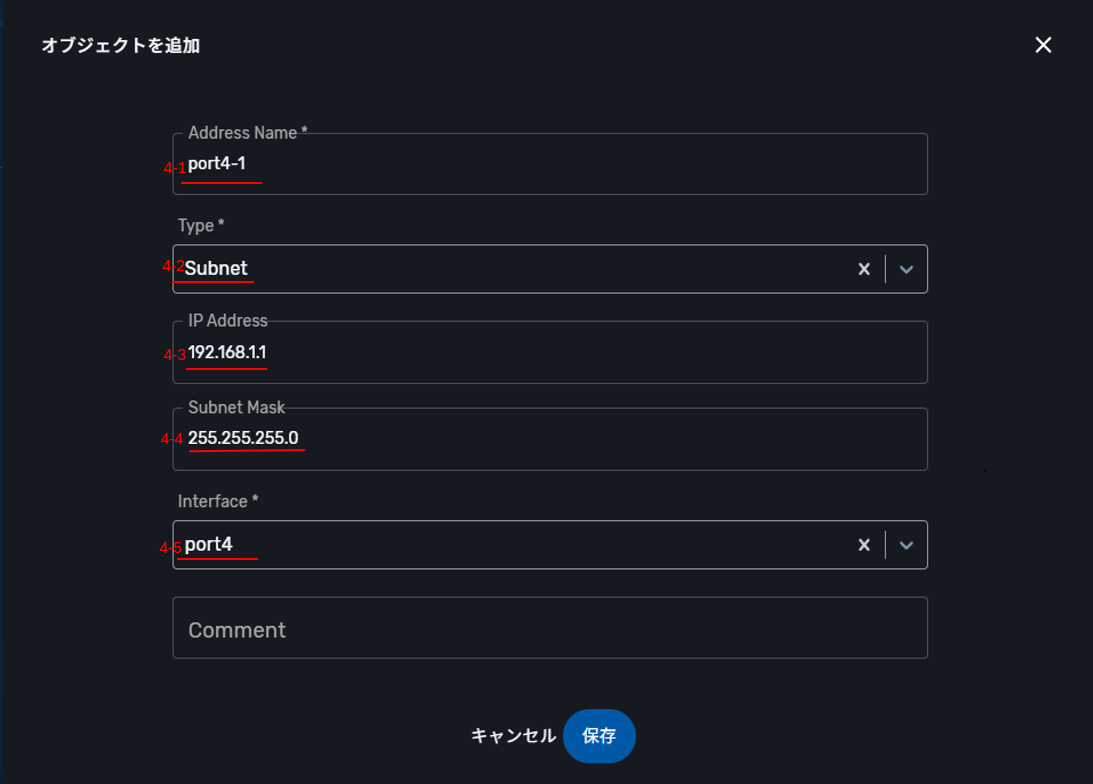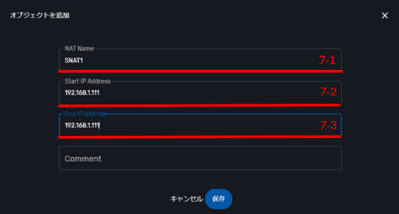 「3.4.1.1. アドレスオブジェクトの設定:FIC接続ネットワークアドレス」 と同様の手順でサーバーインスタンスのアドレスをアドレスオブジェクトとして設定します。
