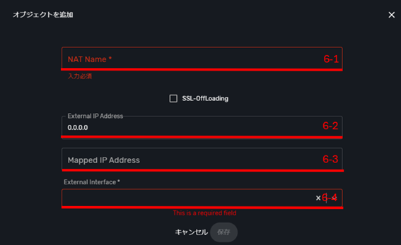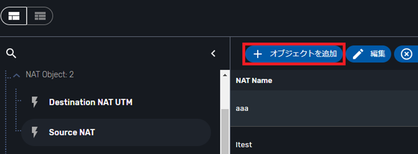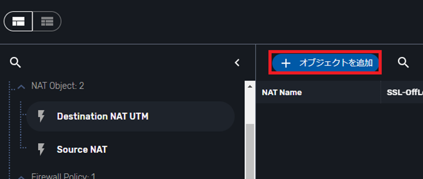画面左側の「Destination NAT UTM」をクリックし、画面中央の「オブジェクトを追加」をクリックします。