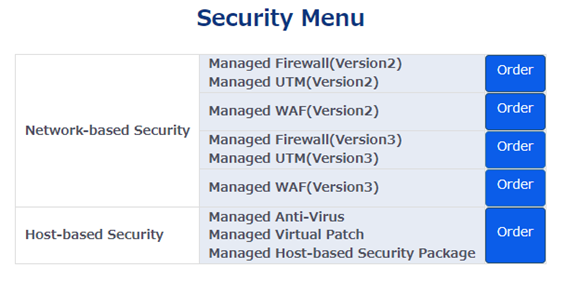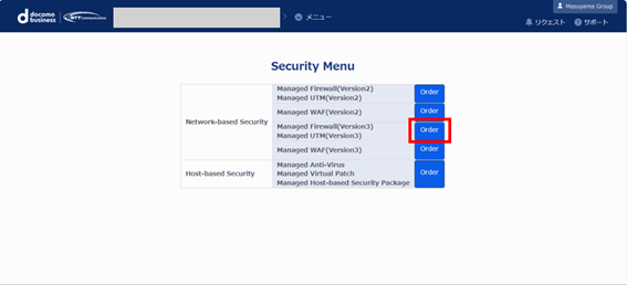 「Network-based Security」→「Managed Firewall/Managed UTM」の「Order」をクリックします。
