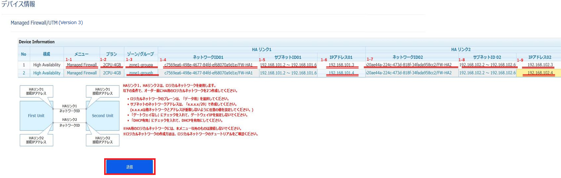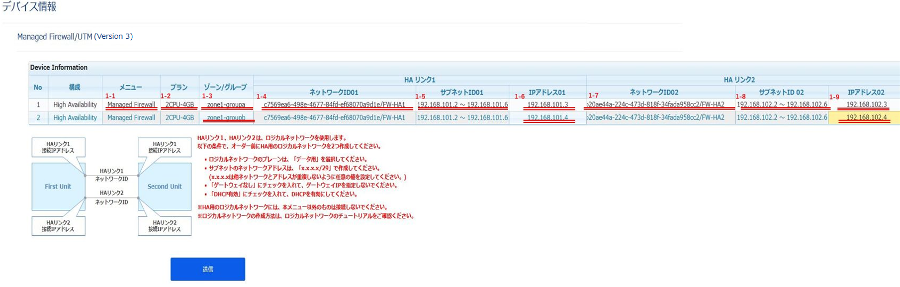 Order画面が表示されるため、「申込種別」で「デバイス追加(HA)」を選択します。