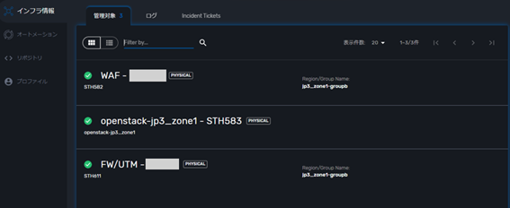 「クラウド/サーバー ネットワークセキュリティ」の「Managed Firewall」、「Managed UTM」、「Managed WAF」のいずれかをクリックします。