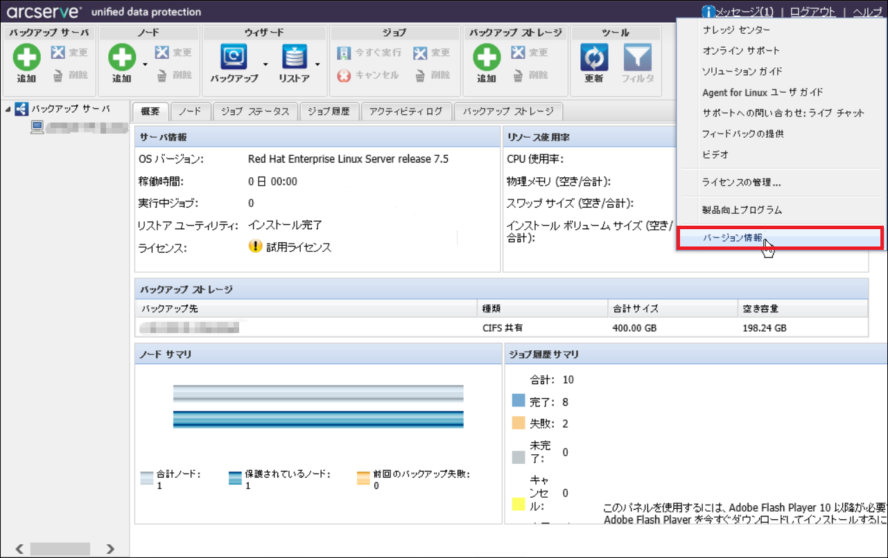 ここでは、1つの例としてOSがRed Hat Enterprise LinuxのサーバーインストールされたArcserveを最新バージョンへアップデートする手順を記載します。