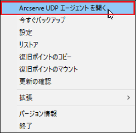 2.[Arcserve UDPエージェントを開く]を選択します。