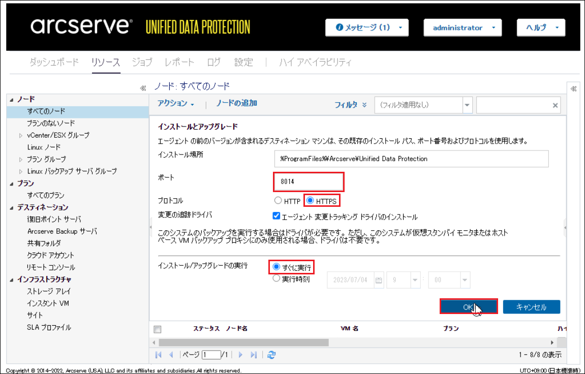 5.3.5.1. Arcserveのインストール(パターン1:UDP コンソールからのアップグレード)¶
