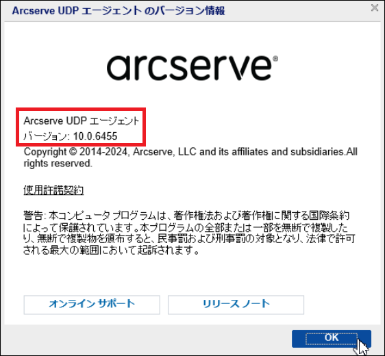 アップグレード後のArcserve UDP エージェントのバージョンの確認¶