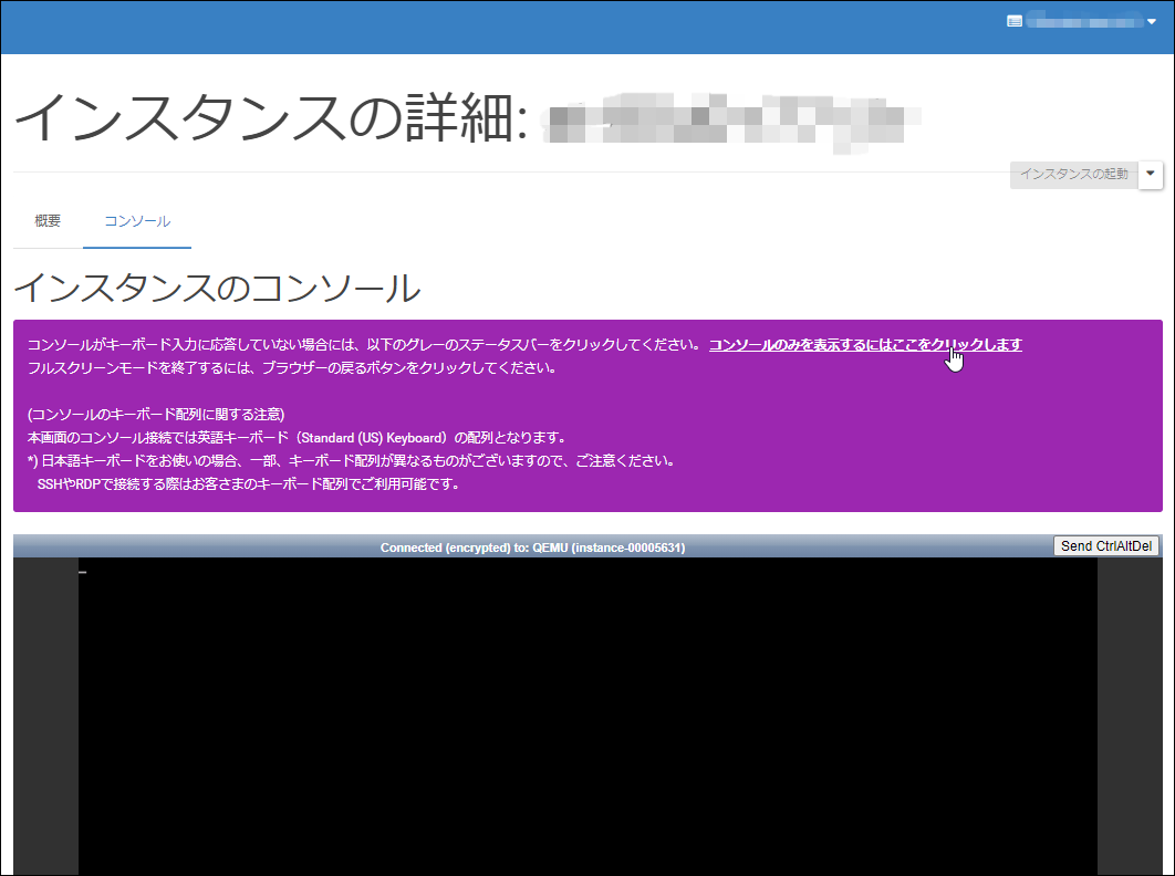 10.インスタンスの詳細画面にてインスタンス画面に入ります。