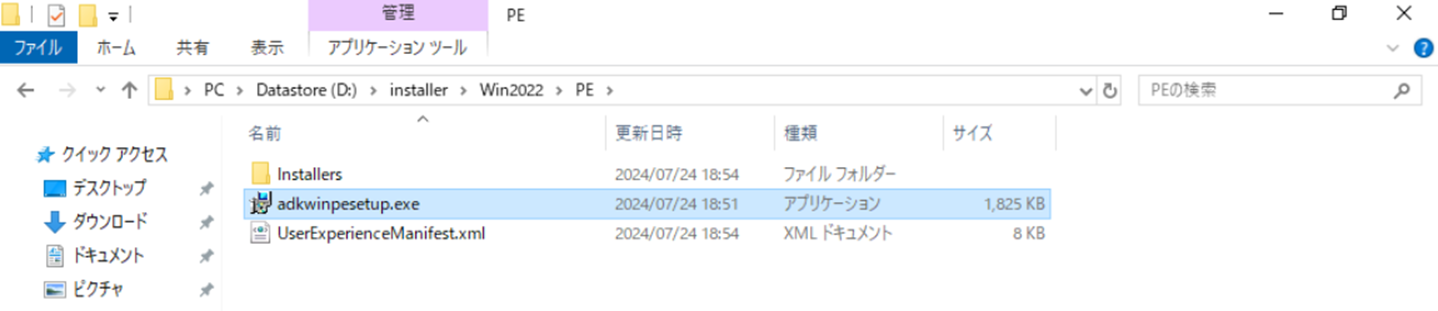 「Win2022」フォルダ内のPEフォルダを開きます。