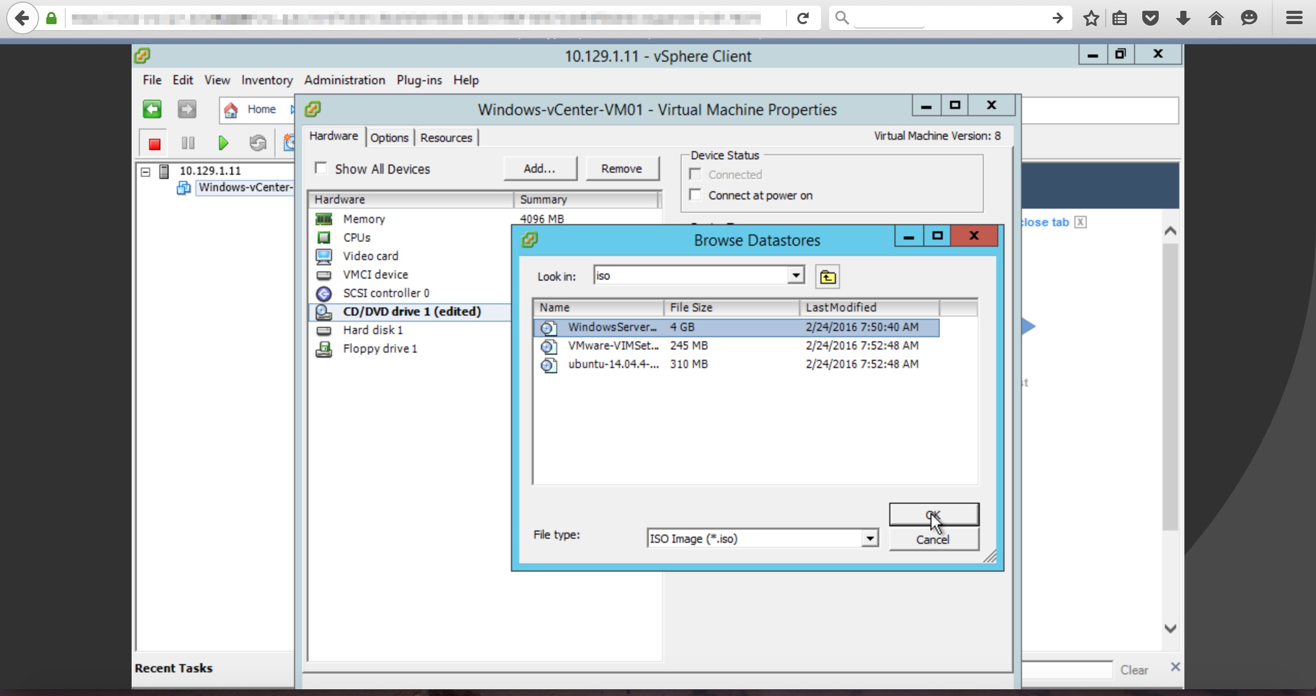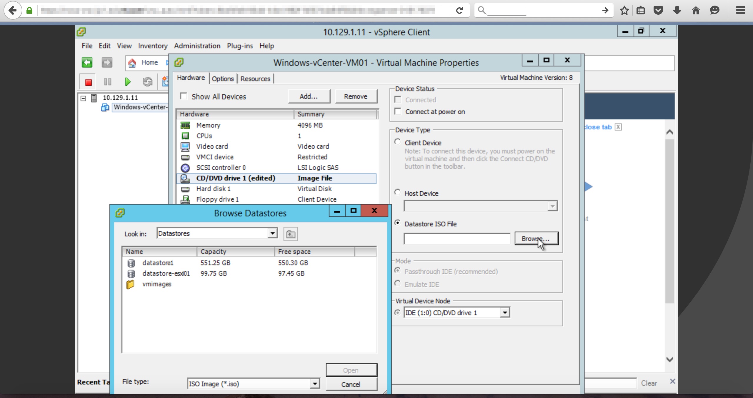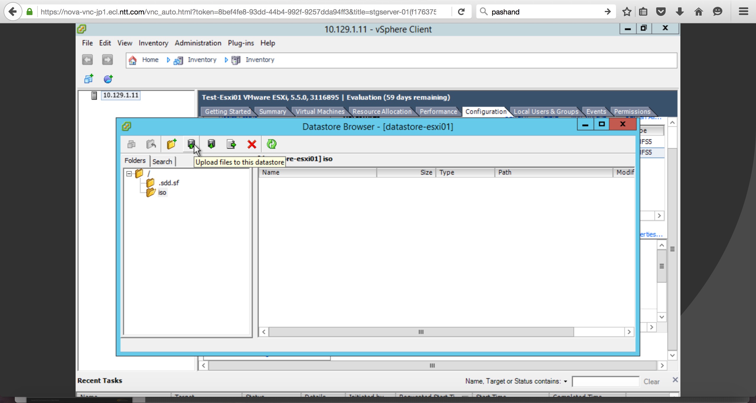 - データストアにローカルフォルダからOS等のバイナリファイルをアップロードします。サーバーインスタンスにCD/DVDドライブをマウントし、OSをインストールすることができます。