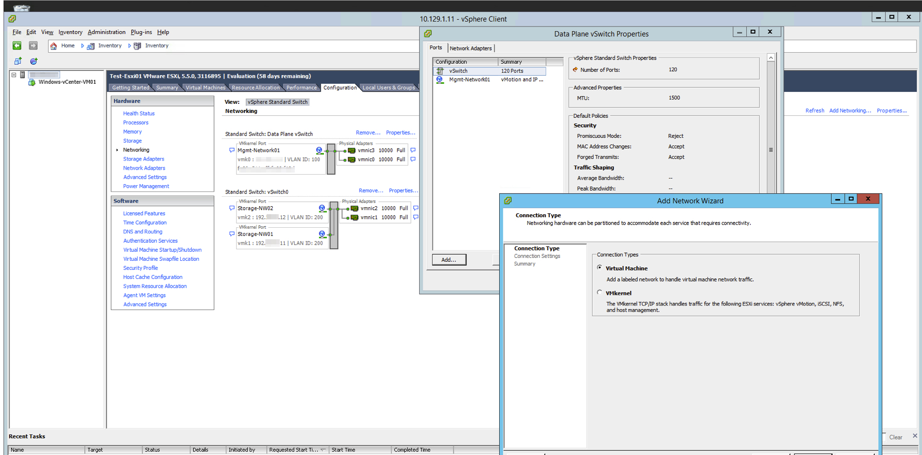 vSphereClientからStoragePlaneへ接続するvSwitchへ、インターフェースの作成を実施します。