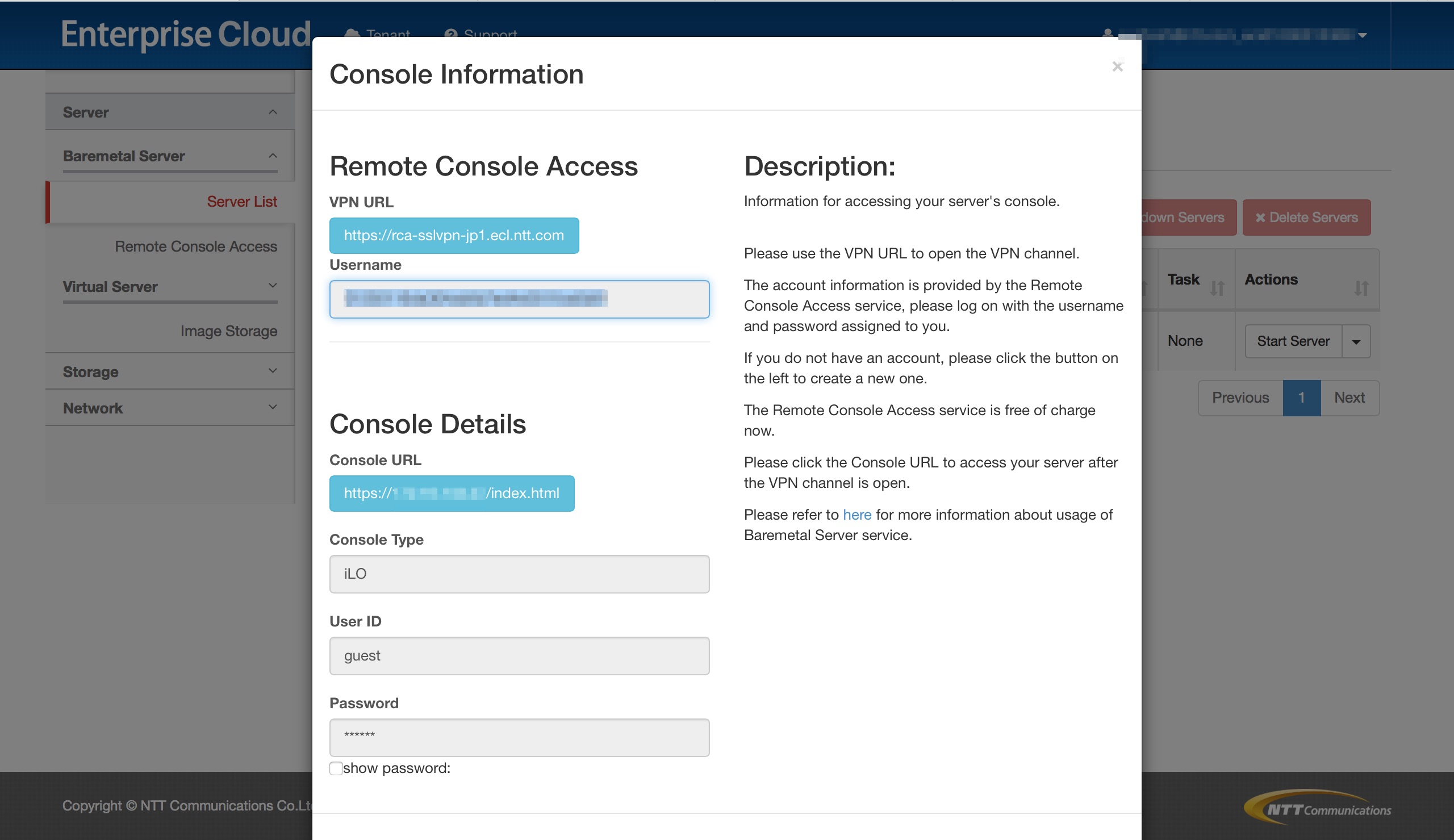 リモートコンソールアクセスの情報¶