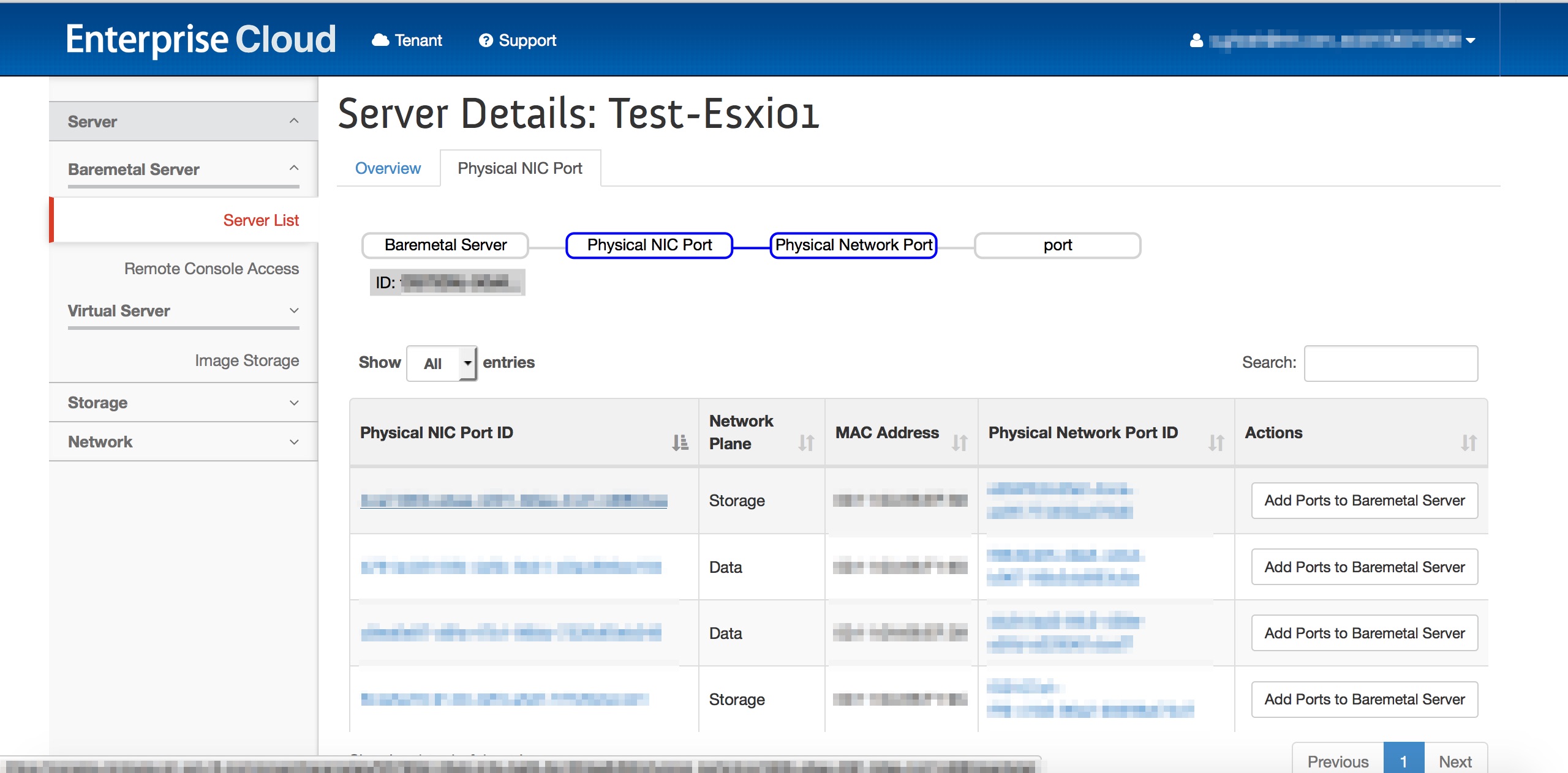 ベアメタルサーバー物理NICポート |