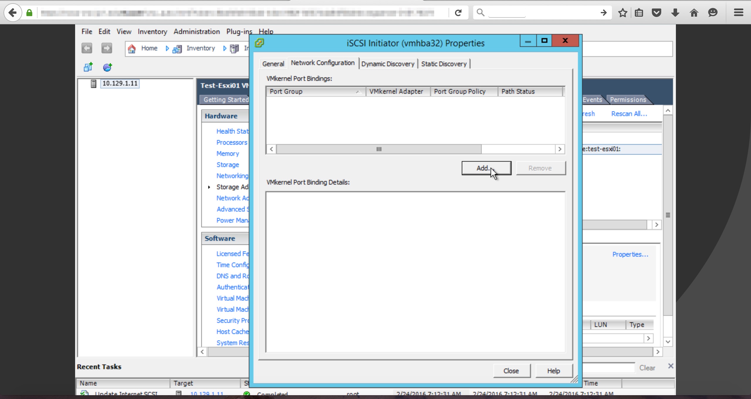 ソフトウェアiSCSIアダプタにおけるポートバインド設定¶