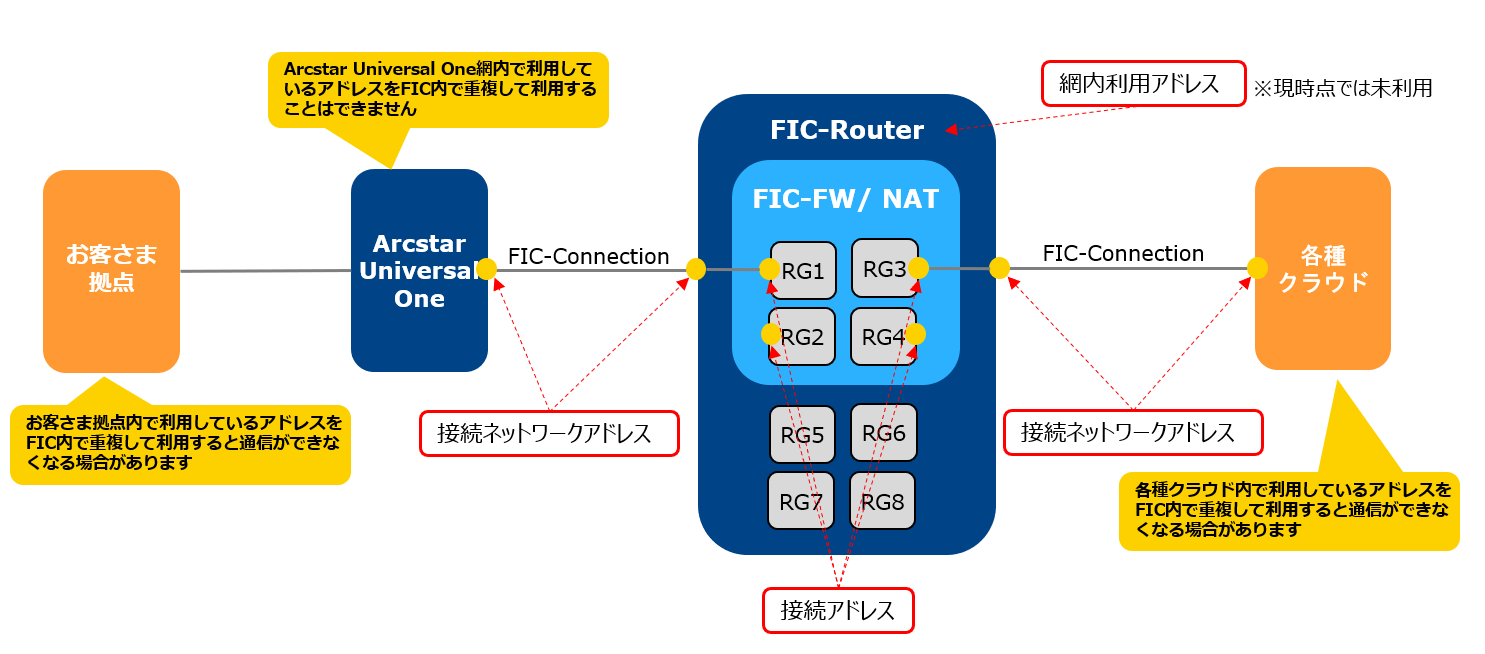このページはFlexible InterConnect(以下、FIC)で設定する「網内利用アドレス」がFIC内でどのように利用されているのか、
