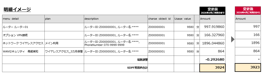 2026年4月のご利用分より、docomo business RINK セキュアドWANのご利用料金のご請求額が、メニュー単位にて整数で算出した料金となります。