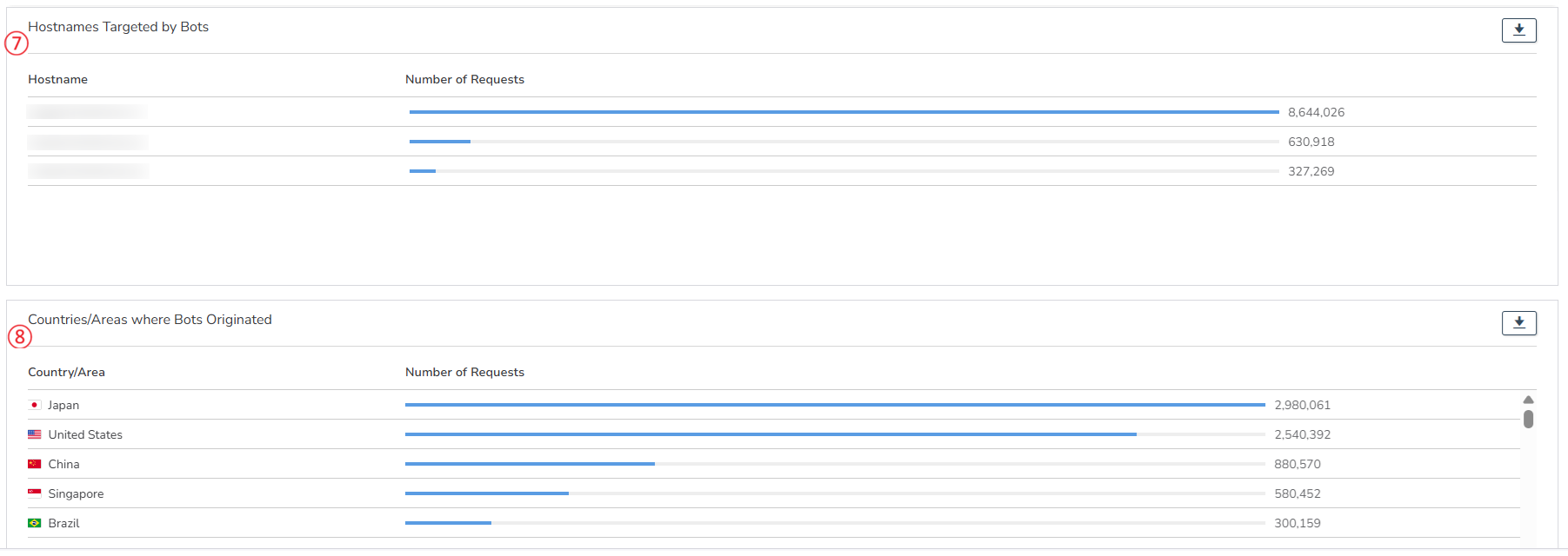 ⑦ Hostnames Targeted by Bots