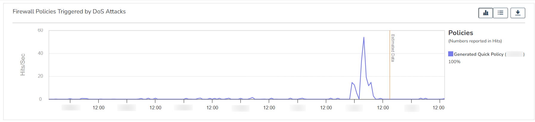 DoSとして検知されたトラフィックについて、どのセキュリティポリシーで検知されているか確認できます。