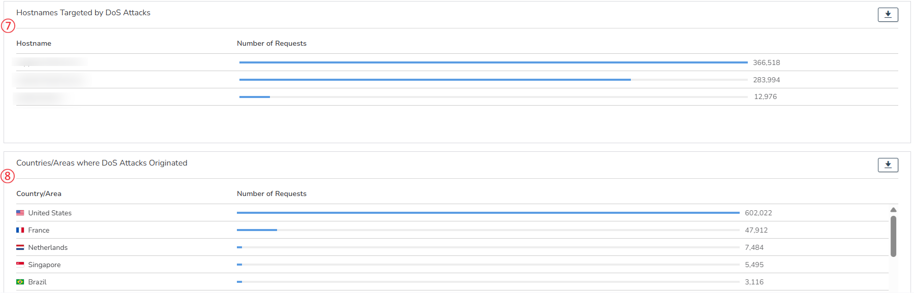 ⑦ Hostnames Targeted by DoS Attacks