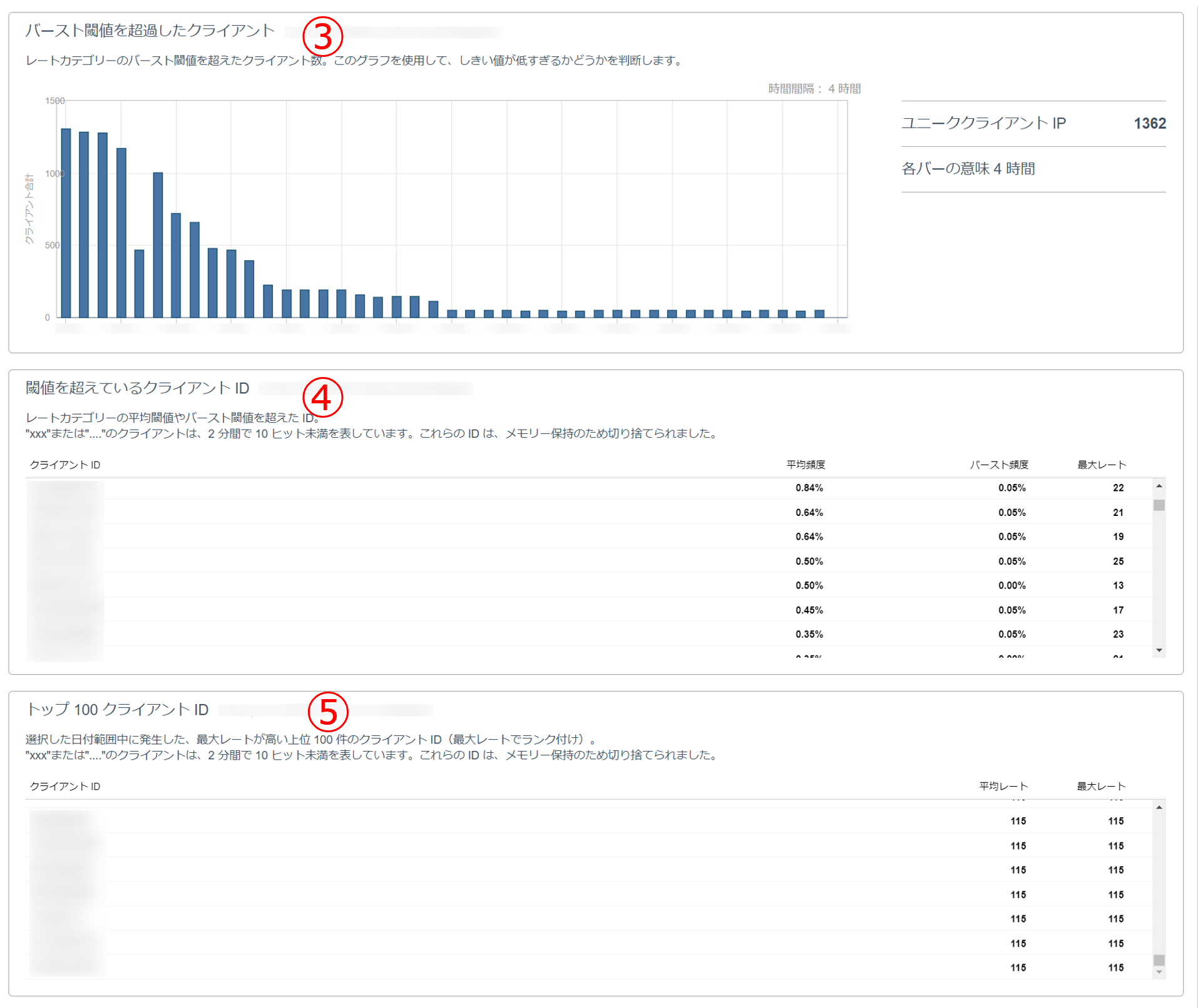 ④ 閾値を超えているクライアントID