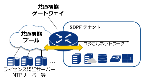 共通機能ゲートウェイが持つ、ゲートウェイとしての機能です。お客さまテナントと共通機能プールを接続するためのL2/L3接続機能を提供します。 |