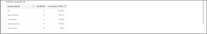 取得期間におけるアプリごとの risk値 と トラフィック量 を表示