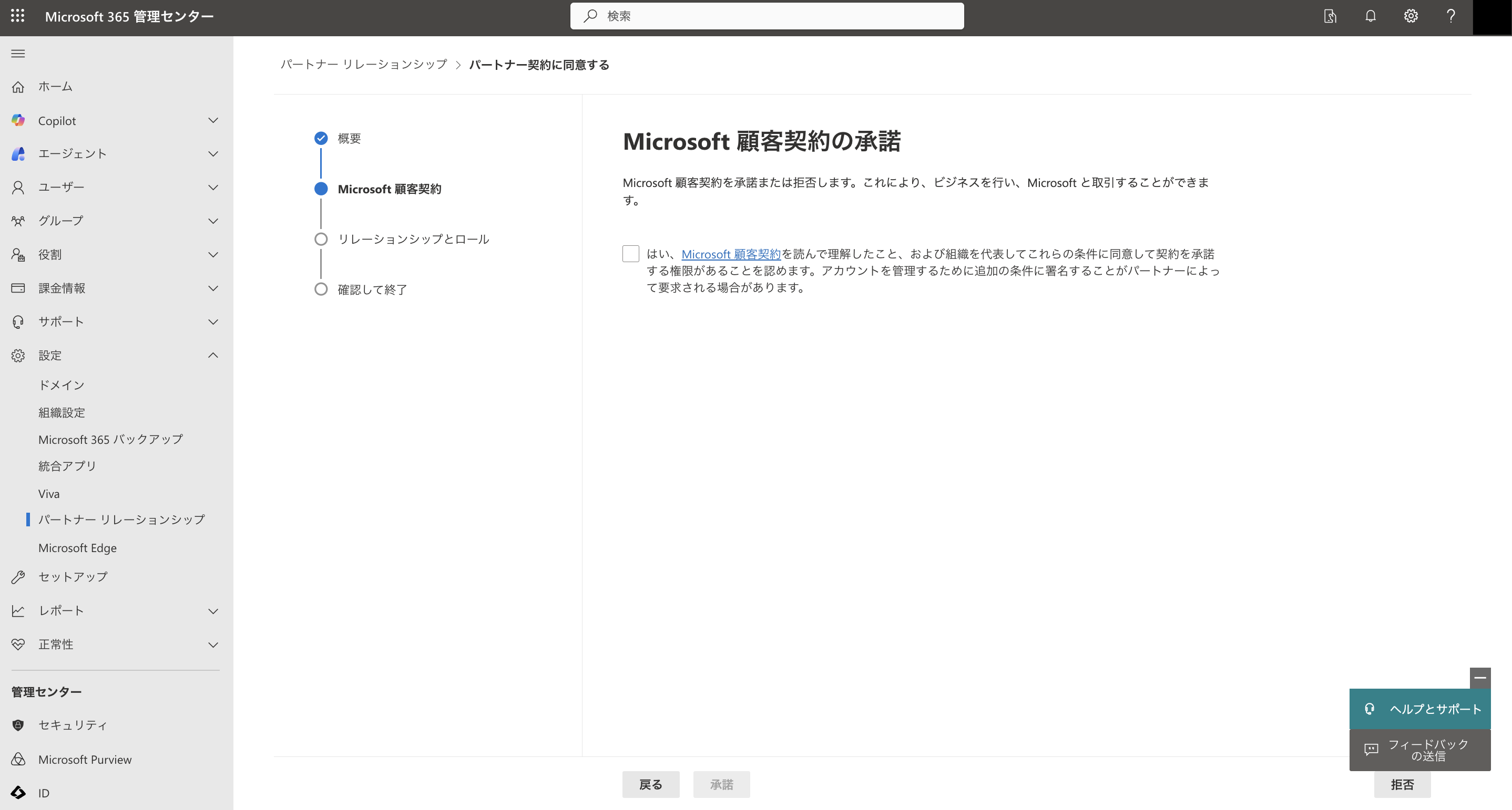 Microsoft顧客契約を承諾する画面が表示されない場合は、以下をご確認ください。