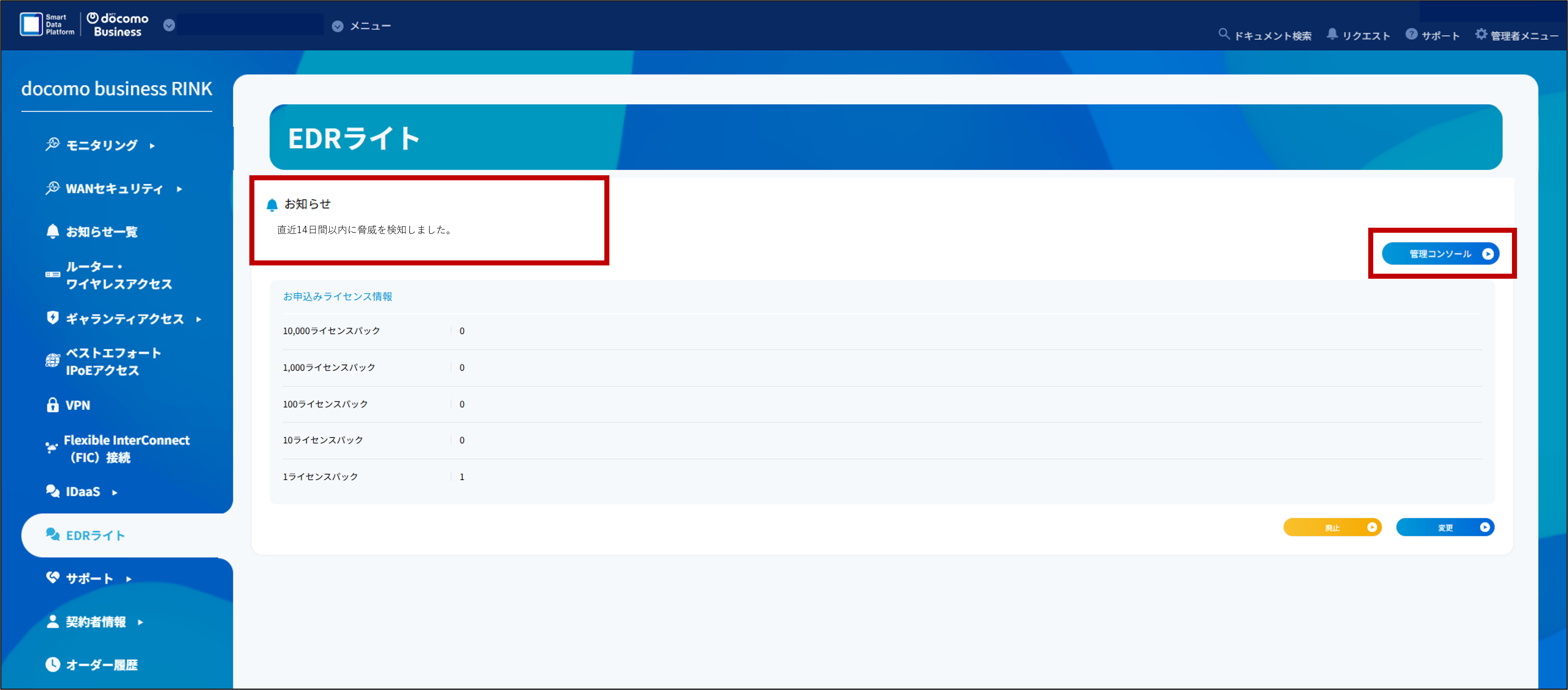 4.2. docomo business RINK EDRライト管理コンソールでの確認¶