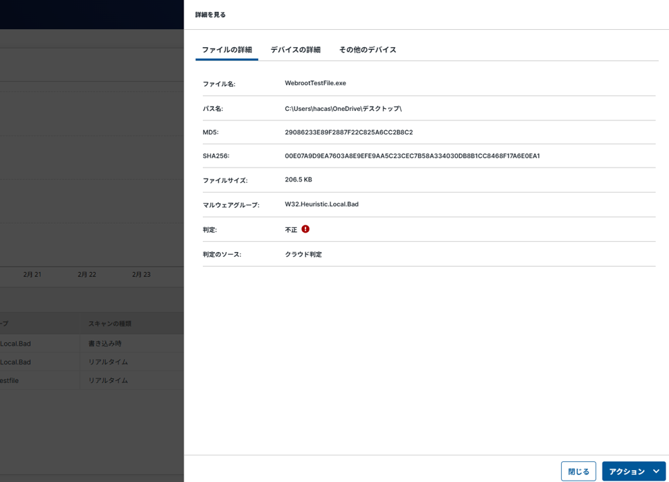 (2)検出された脅威の詳細情報が確認可能です。