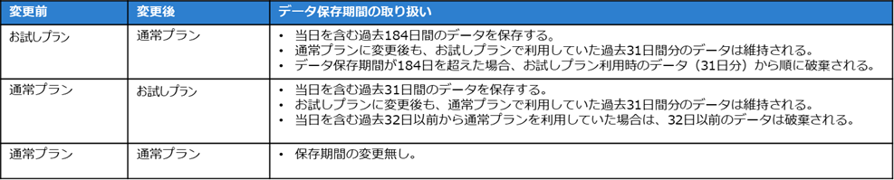 - ※4 プランを変更した場合、変更後のプランによってデータ保存期間の取り扱いが異なります。