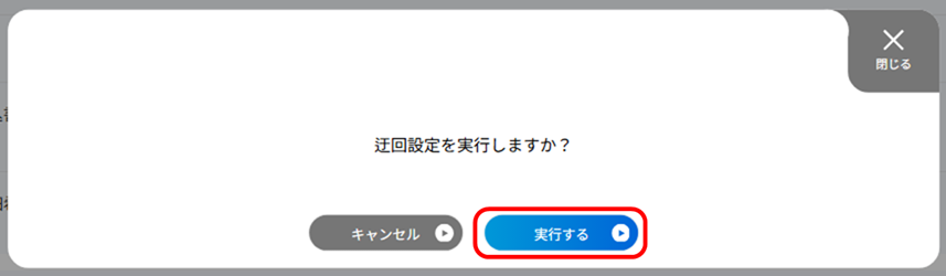 「迂回設定実行を受け付けました。」の画面が表示されますので、[閉じる]ボタンを押下します。