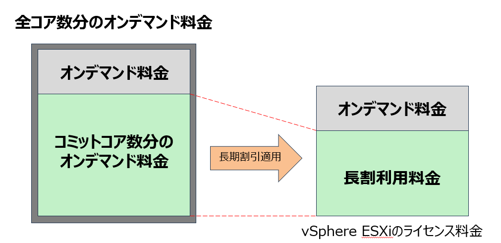加えて、コミットコア数分の長期割引利用料金が課金されます。