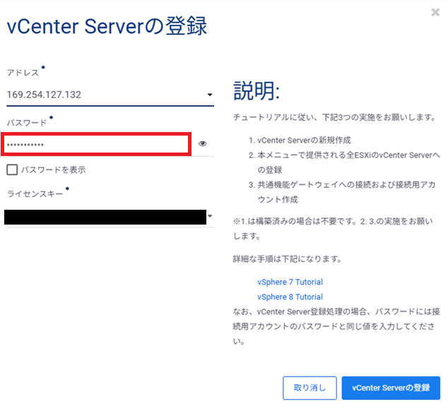 SDPFポータルへのvCenter ServerのIPアドレス登録¶