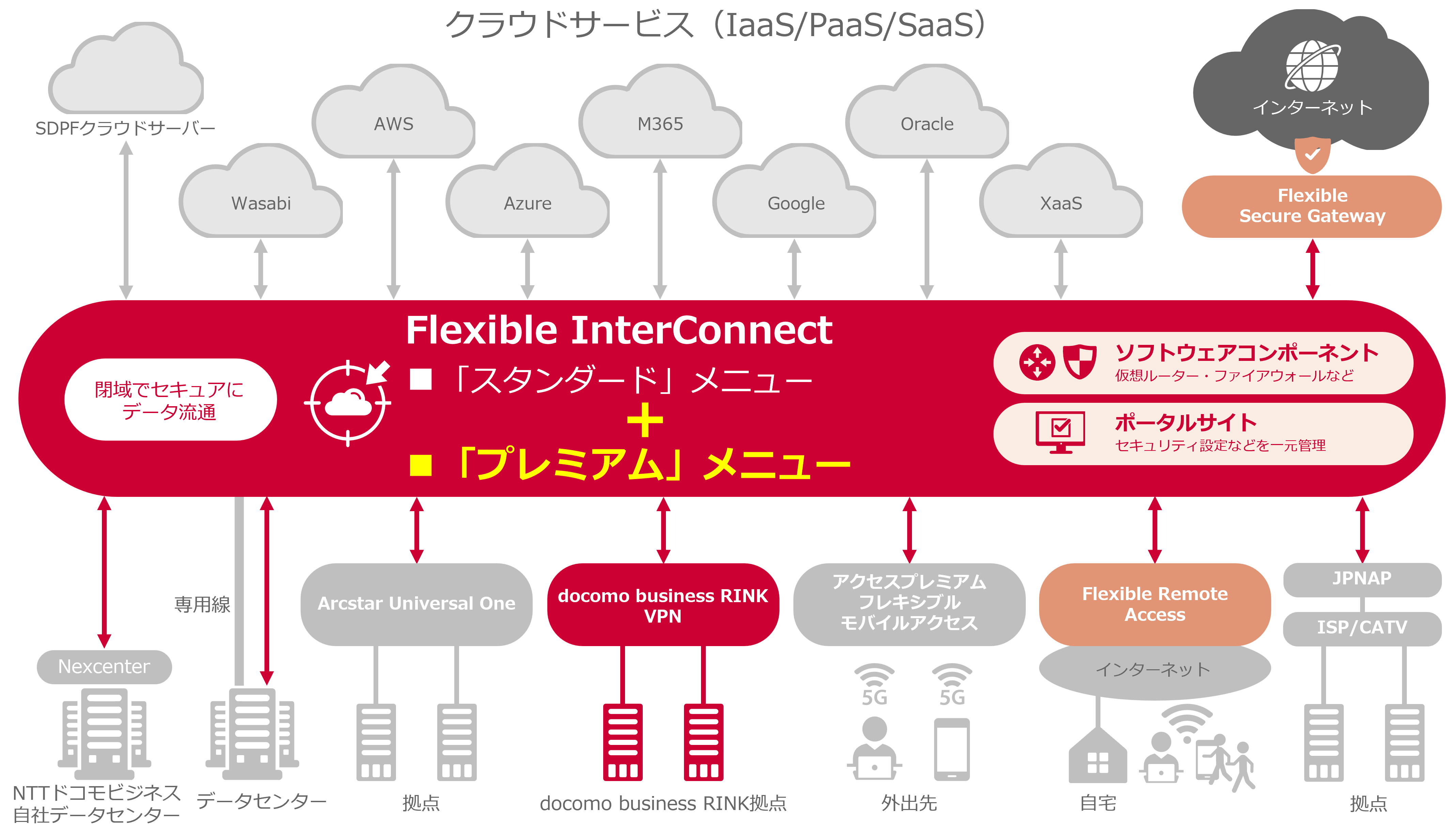 「Flexible InterConnect」およびNTTドコモビジネスの企業向けVPN「Arcstar Universal One」の