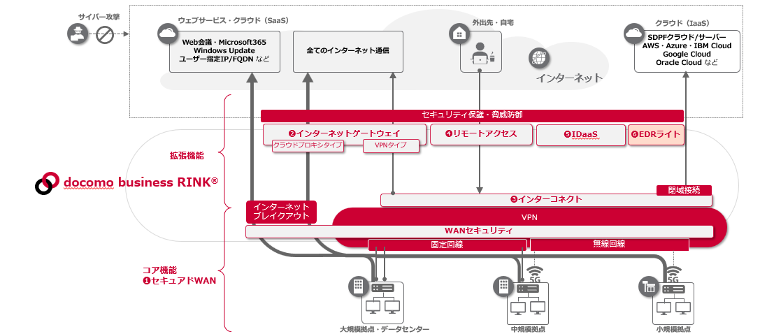 docomo business RINKが提供するネットワーク/クラウド型セキュリティに加え、エンドポイントに対するセキュリティ機能としてdocomo business RINK EDRライトを提供します。