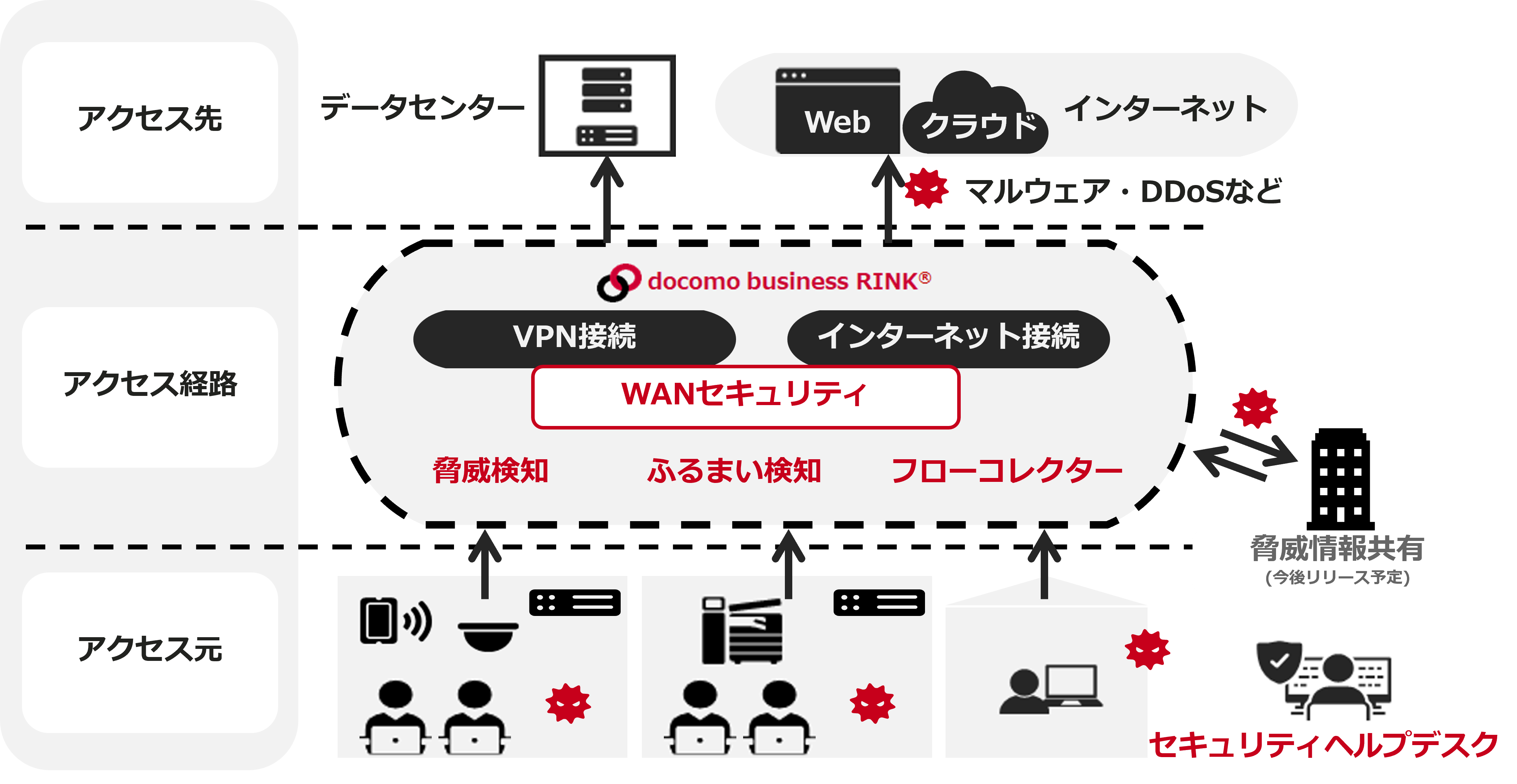 docomo business RINK WANセキュリティのサービス構成は以下のとおりです。